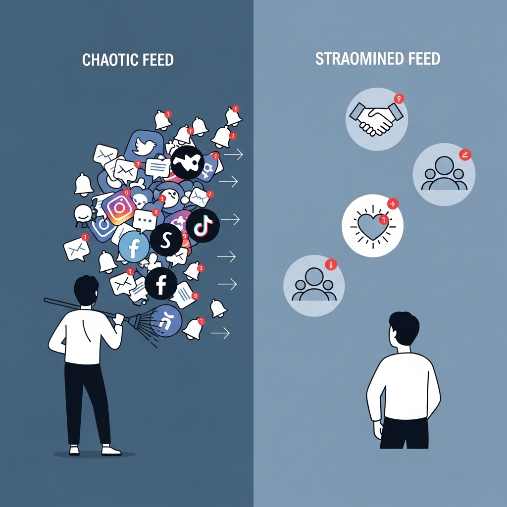 제가 팔로우하는 계정들을 정리하는 시간을 가졌습니다. 나에게 진정으로 영감을 주거나, 긍정적인 영향을 주는 계정들만 남기고, 단순히 비교 심리를 유발하거나 피로감을 주는 계정들은 과감하게 언팔로우하거나 뮤트했습니다. 처음에는 '혹시 이 사람이 서운해하면 어쩌지?' 하는 걱정도 있었지만, 결국 저의 정신 건강이 더 중요하다는 결론에 도달했습니다.