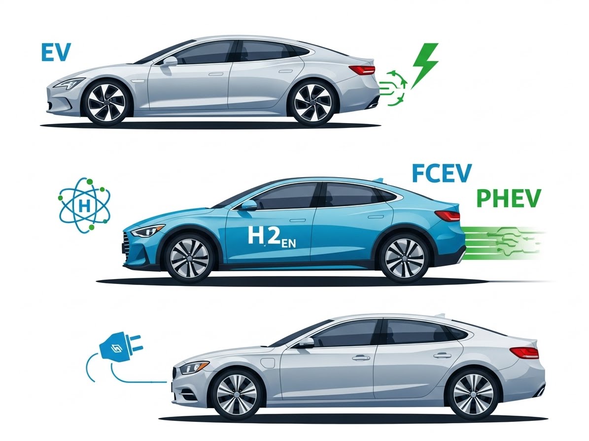 - 수소차 (FCEV): 수소와 산소의 화학 반응으로 전기를 생산하여 구동하는 차량입니다.